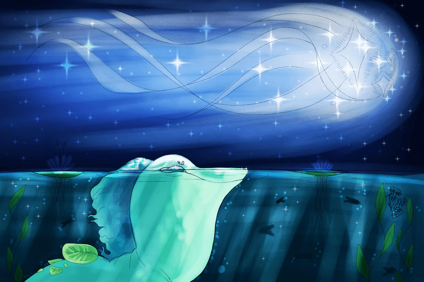 a full-body illustration of your character with a detailed background and scene, including lines, color, and shading.